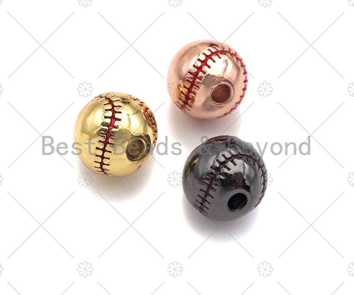 Baseball Spacer Beads, 2mm Hole Baseball Beads, Gold/Silver/Black Color Baseball beads, Baseball charm, 10mm,Sku#Y391