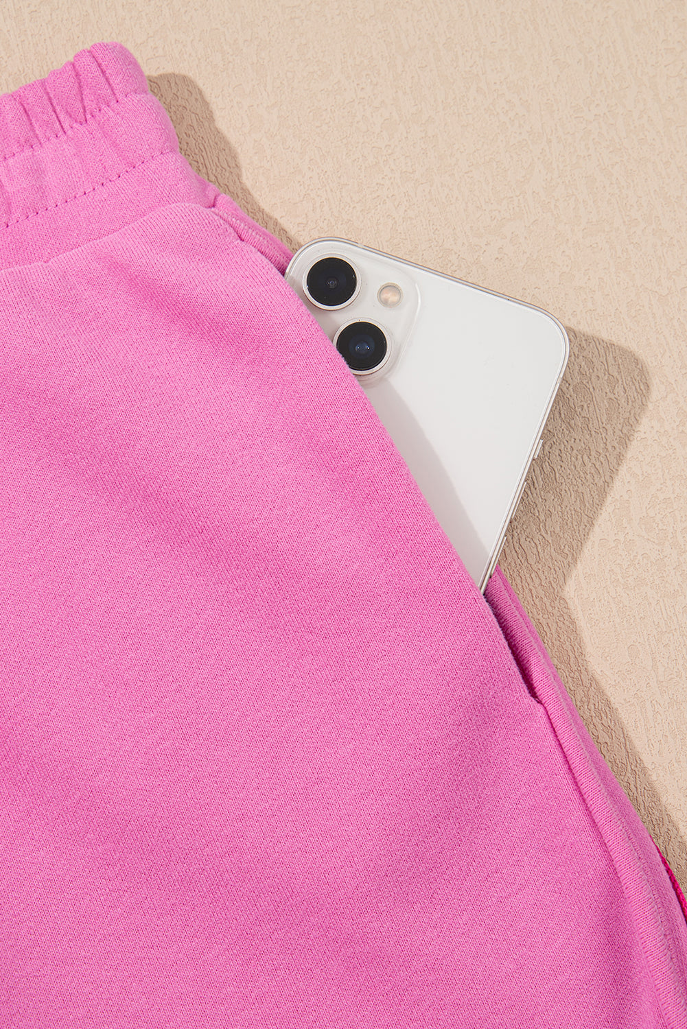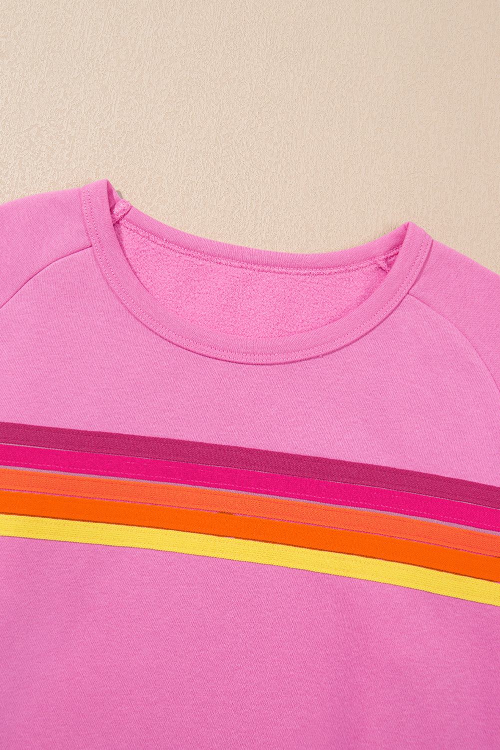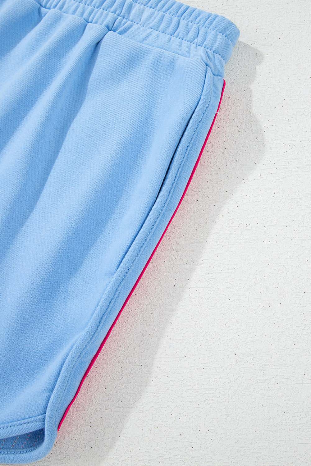 Bonbon Striped Accent Pullover and Shorts Two Piece Casual Set