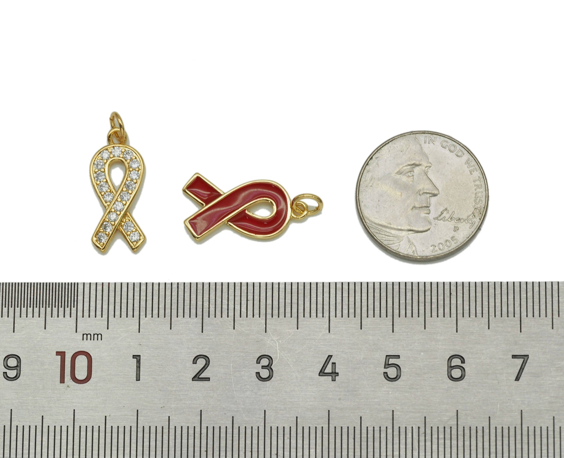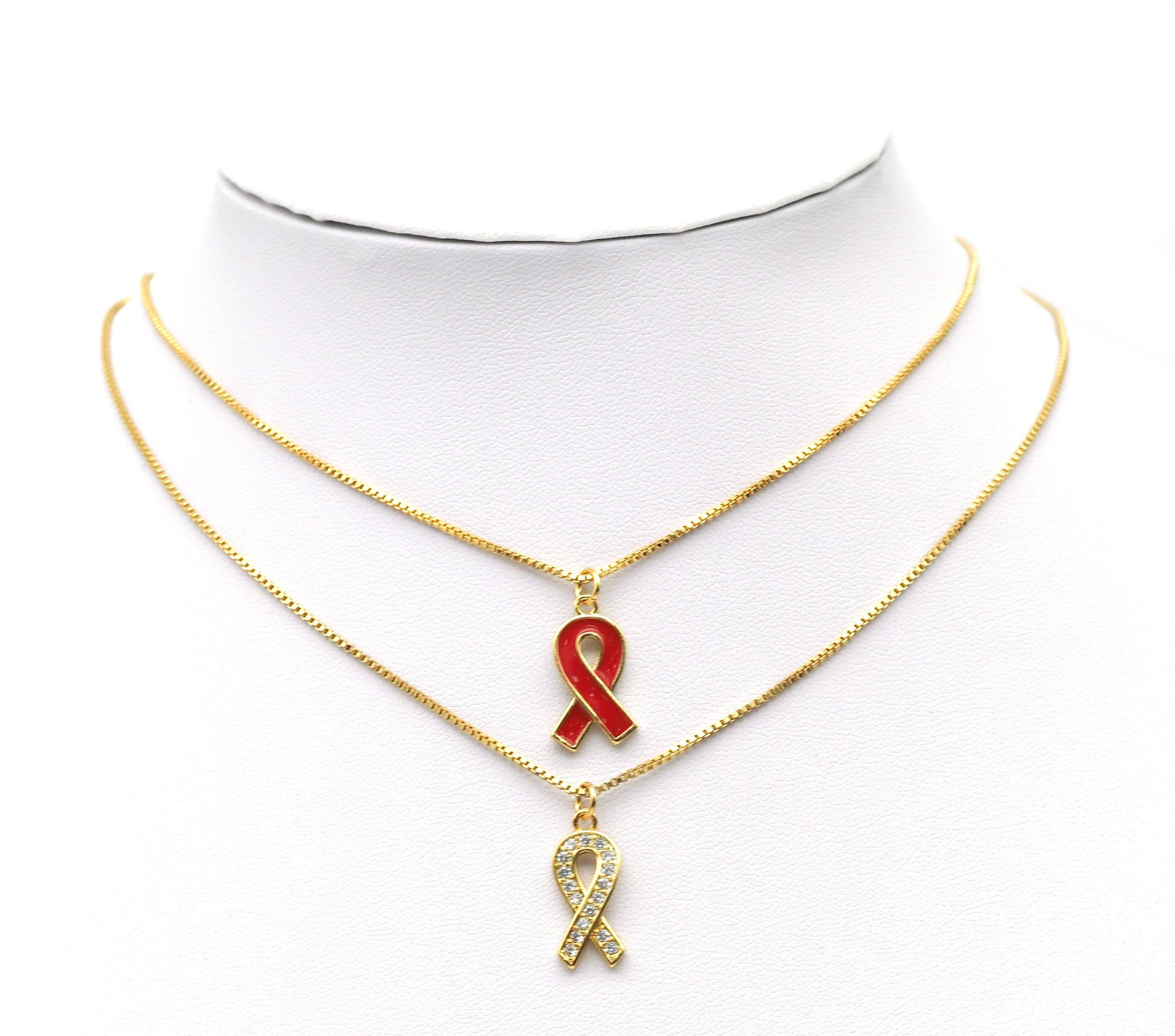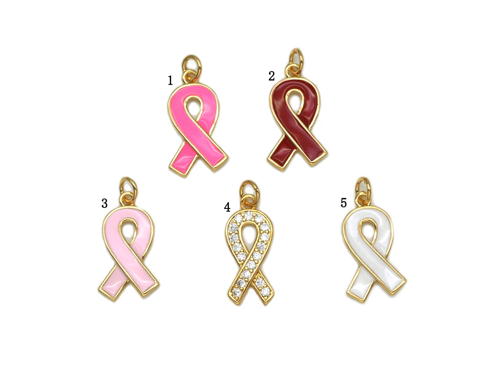 CZ Enamel Cancer Awareness Ribbon Pendant, Sku#LK603