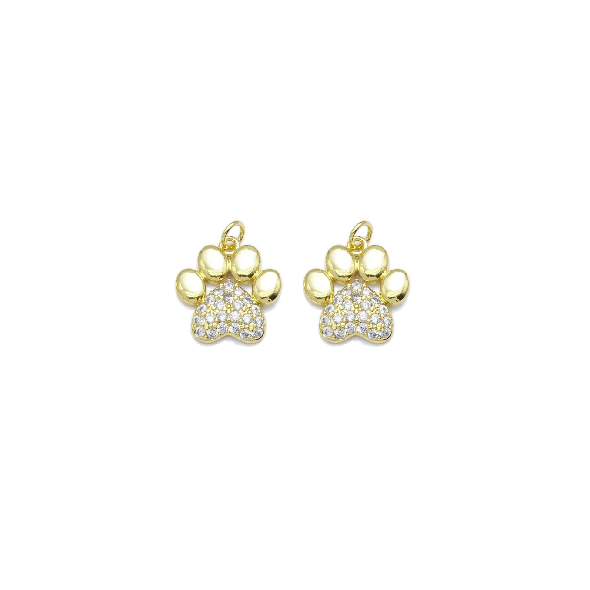 Gold Silver CZ Paw Print Charm, Sku#LK908