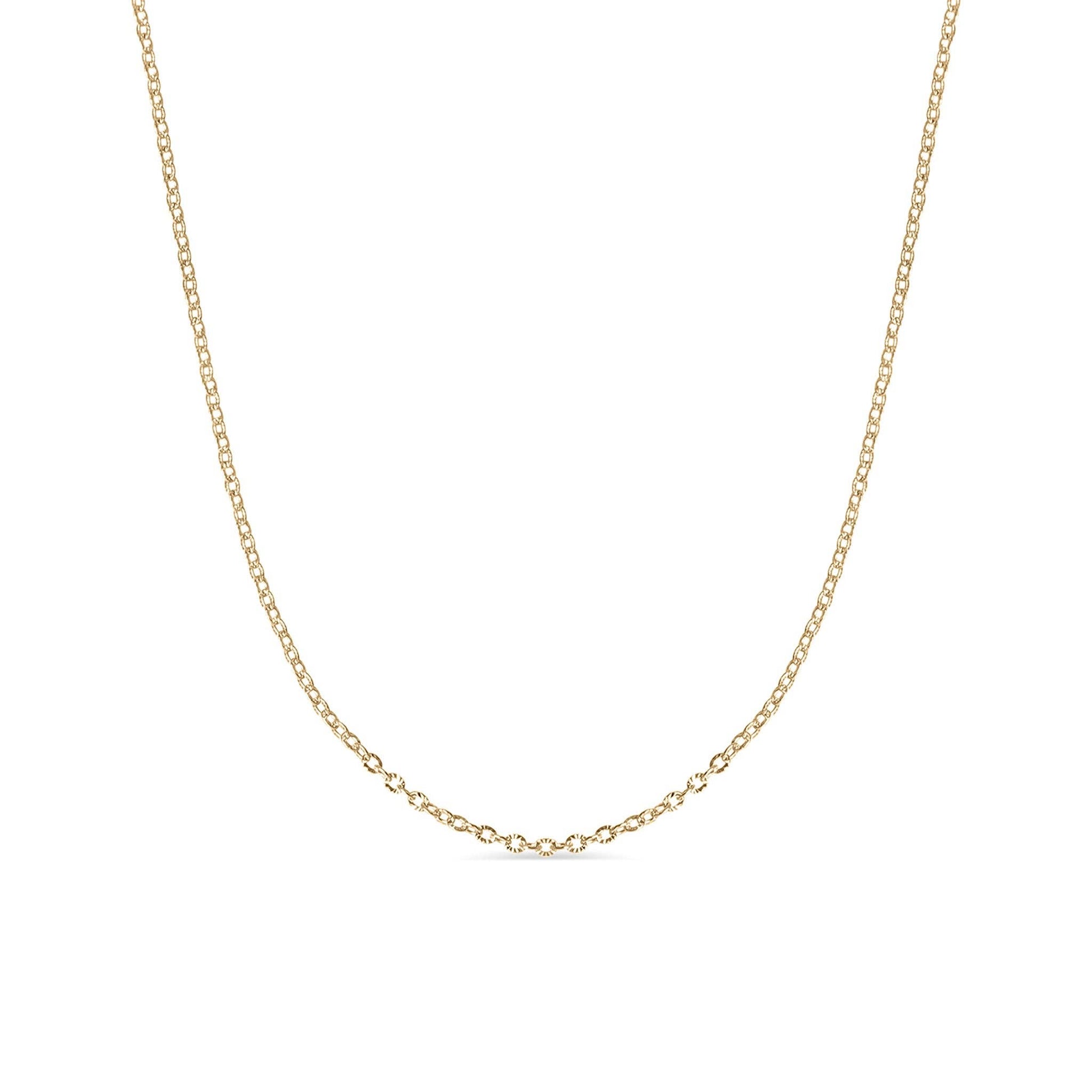 The Crimped Oval Link Chain Necklace is a new classic to have in your store for every season! This dainty, yet intricate 1.5mm wide chain features crimped oval chain links that catch the light in all the right areas for effortless shine. Your customers can wear this chain necklace on it's own, or you can add your favorite charms to create something more unique.