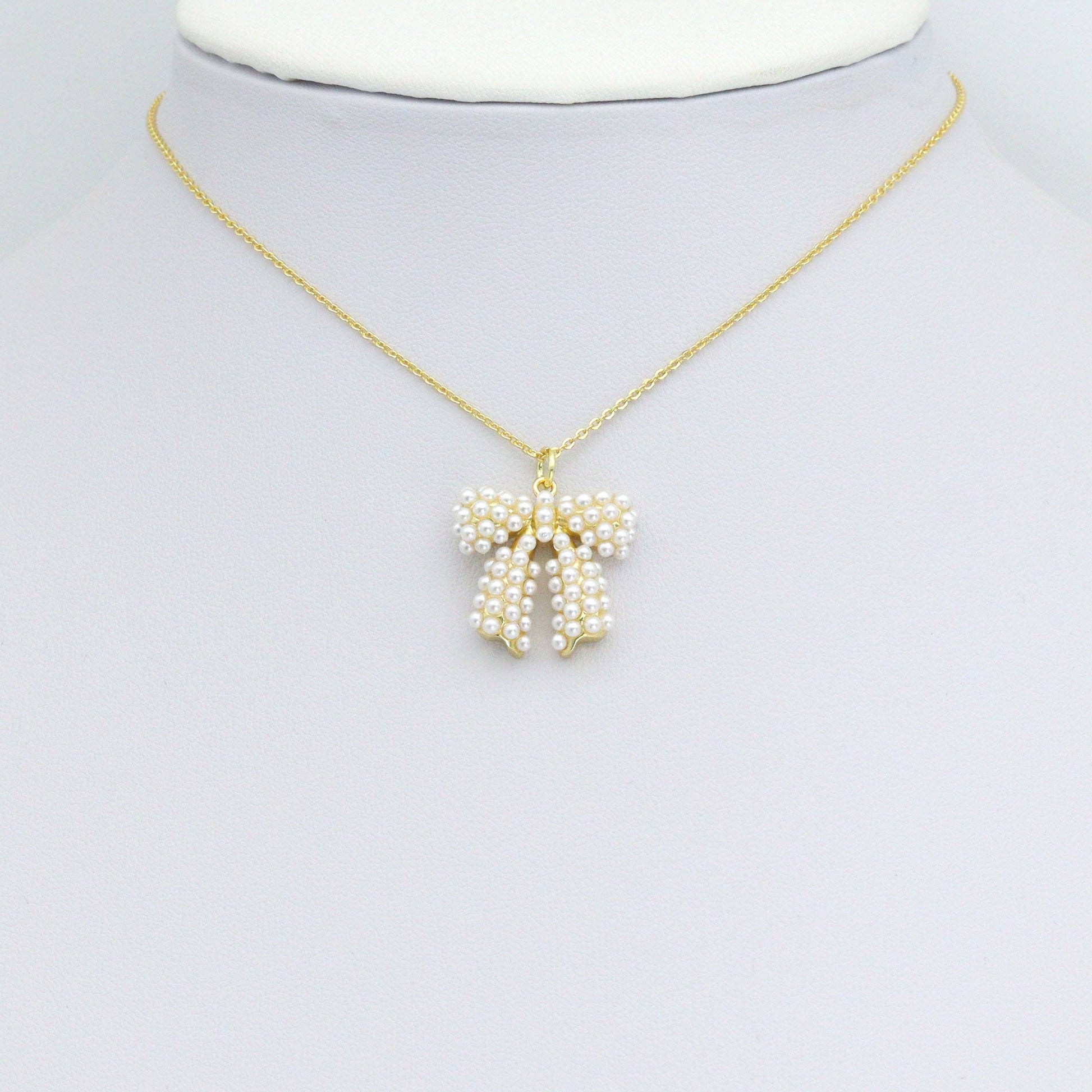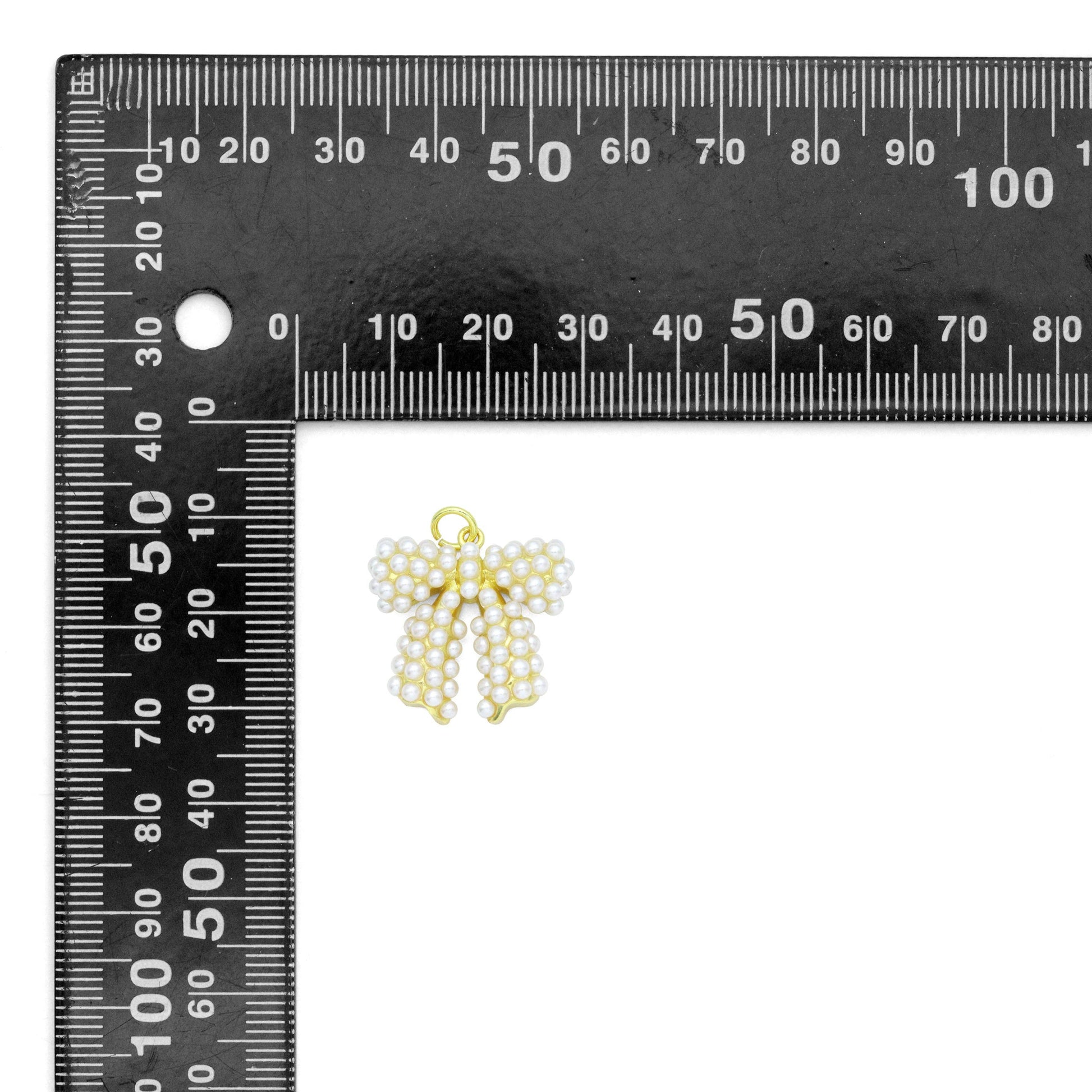 White Pearl Gold Bow Shape Charm Pendant, Sku#A457